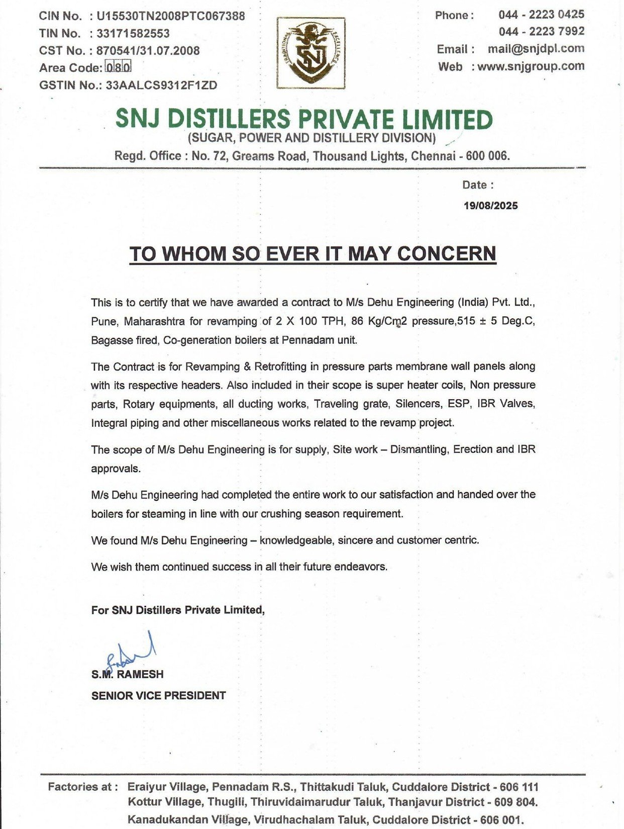 SNJ Distillers Private Limited, Chennai